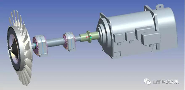 電機(jī)和葉輪通過軸承座聯(lián)接驅(qū)動,因采用單獨(dú)的傳動組,可根據(jù)葉輪的自 重、轉(zhuǎn)速、高速運(yùn)轉(zhuǎn)做功產(chǎn)生的軸向力等實(shí)際受力情況核算,選擇合理的軸承配置。